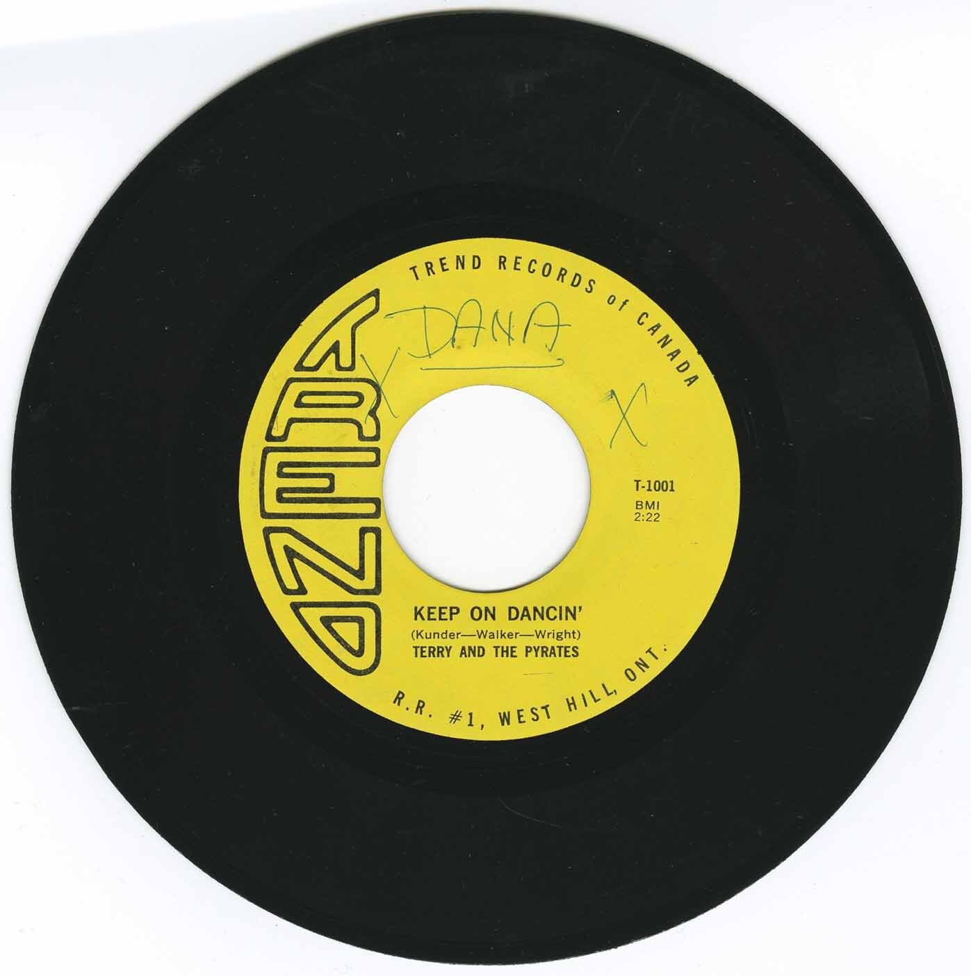 Terry & The Pyrates were another hot R&B band with roots at The Modern Age Lounge, in east end Toronto. The group started out as a quintet called The Dana, featuring lead vocalist Glen Daigle, guitarist Val Rufo, organist Aldur Kundur, bass player Mike Levine and drummer Lance Wright. When Glen Daigle left for college, he was replaced by the more experienced vocal powerhouse Terry Walker, who had worked as MC and back-up singer for The Associates. In a surprising move, the group added a second drummer and a horn section and changed their name to Terry & The Pyrates. They immediately signed a recording contract with Trend Records and released an up-tempo dance single called, not surprisingly, “Keep On Dancin”. They eventually morphed into the 9-piece Aurora Borealis, securing a major-label record deal in the U.S. But they were unable to gain the success they were hoping for. Mike Levine later left to become a founding member of Triumph.