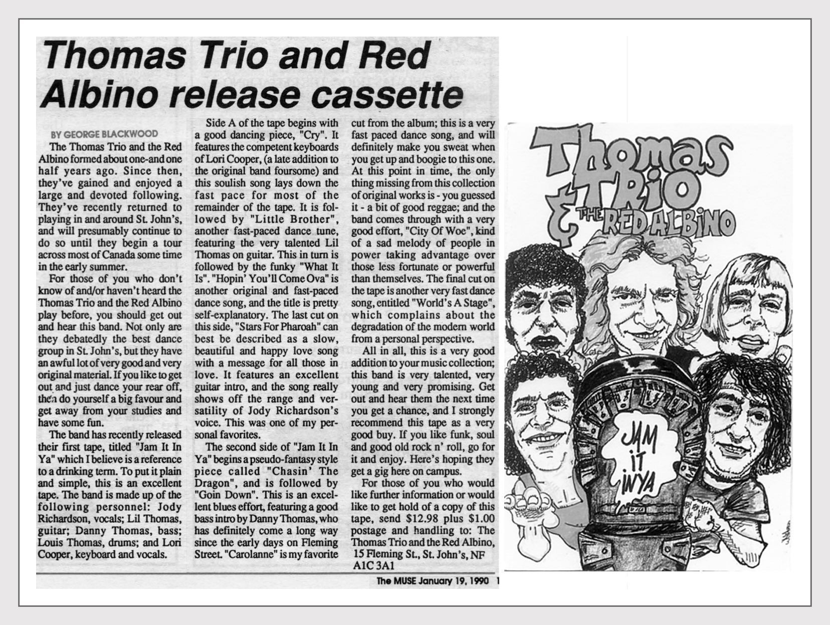 For those of you who would like further information or would like to get a hold of a copy of this tape, send $12.98 plus $1.00, postage and handling to: The Thomas Trio and the Red Albino, 15 Fleming St., St. John’s, NF A1C 3A1