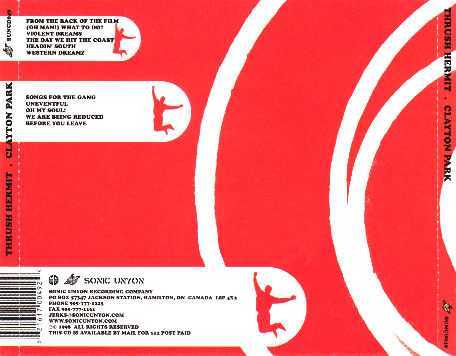 Thrush Hermit’s second album, Clayton Park , was released by Hamilton indie label Sonic Unyon on February 23, 1999. The album was immediately championed by new and old fans, as well as campus radio, where it spent almost the entire year at #1 on the charts.