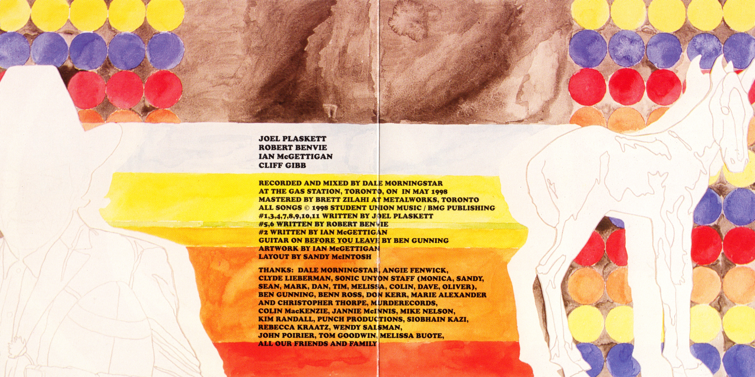 Sean Palmerston [Sonic Unyon publicist, 1997 to 2013]: The album cover was supposed to be the inside sleeve painting with the horse, and Monica didn’t like it. She was very hands on so she convinced them to put the red and white painting on the cover instead.