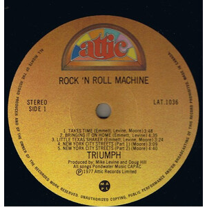 Rock & Roll Machine (also Rock 'N' Roll Machine) is the second studio album by Canadian hard rock band Triumph. It was first released in 1977 by Attic Records. The album contained in the band's first hit, a version of Joe Walsh's "Rocky Mountain Way".