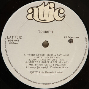 One of Triumph's most distinct records, this eponymous, Canada-only release kicks off with a Kiss-worthy party song in "24 Hours a Day" before settling down to more recognizable Triumph ingredients, including semi-prog excursions ("Blinding Light Show/Moonchild") and bluesy hard rockers ("Don't Take My Life," "Be My Lover"). But the most interesting distinction about ‘Triumph’ (later reissued as ‘In the Beginning’) is the growl in Rik Emmett’s typically sweet falsetto (see "Let Me Get Next to You"). And "Street Fighter" may be Triumph’s heaviest song ever.