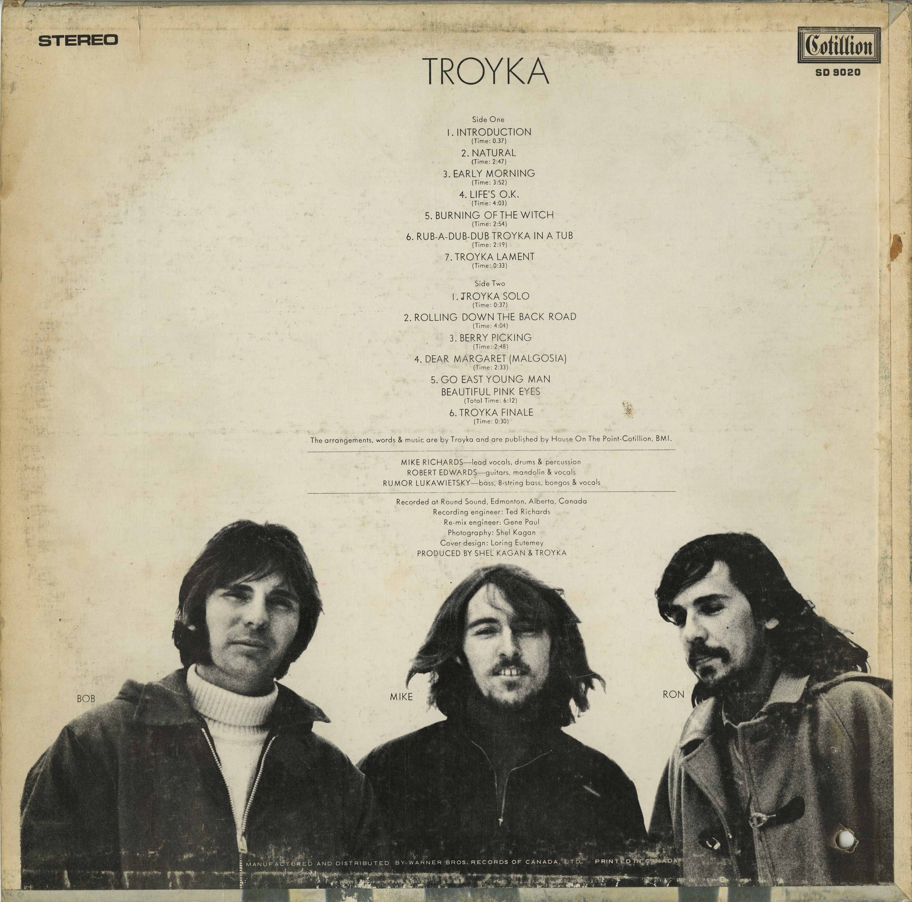 Their self-produced album was shopped around major labels before catching the ear of New York producer Shel Kagan. Atlantic Records agreed to release it on Cotillion, sending Kagan and engineer Gene Paul (son of Les Paul) to Edmonton for remixing sessions at Round Sound Studios. Though the band had mixed feelings about the final edits and cover photo, the deal was done. Troyka was unleashed in March 1970 with little fanfare — and little precedent.