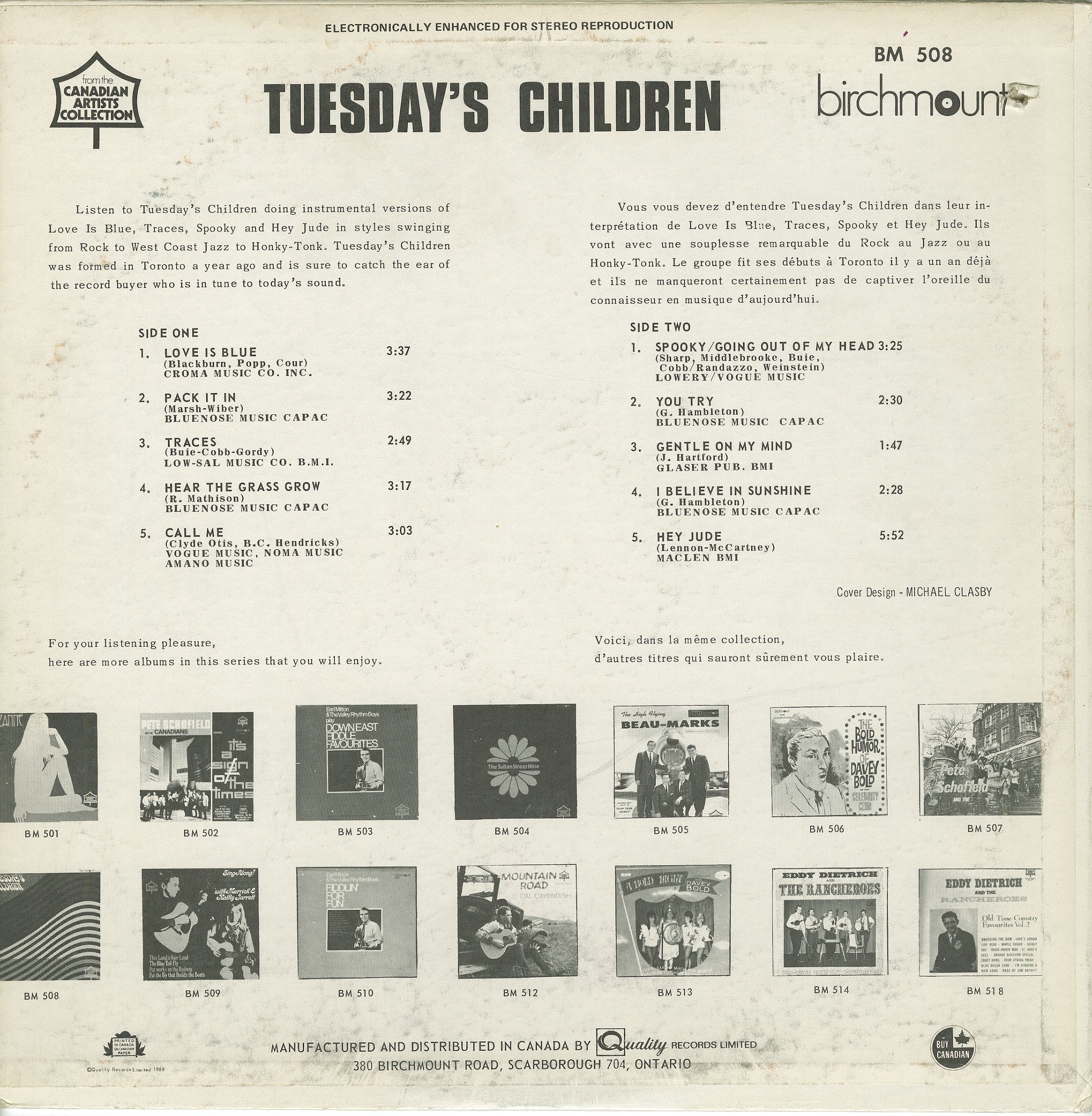 Instrumental version of the "Suzanne" LP on Birchmount, the first in the series "Canadian Artists Collection". Another very interesting point is that the Hambleton (Greg, Fergus) brothers of the psych group "a passing fancy" and record label "Axe records" have their hands all over this and the "Suzanne" LP, writing a few tracks, and essentially producing/playing on this LP. The Passing Fancy hit song "I Believe In Sunshine" appears here.