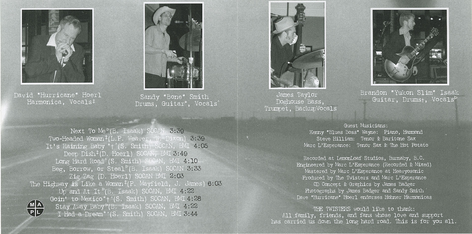 The Twisters would like to thank all family, friends, and fans whose love and support has carried us down the long hard road. This is for you all.