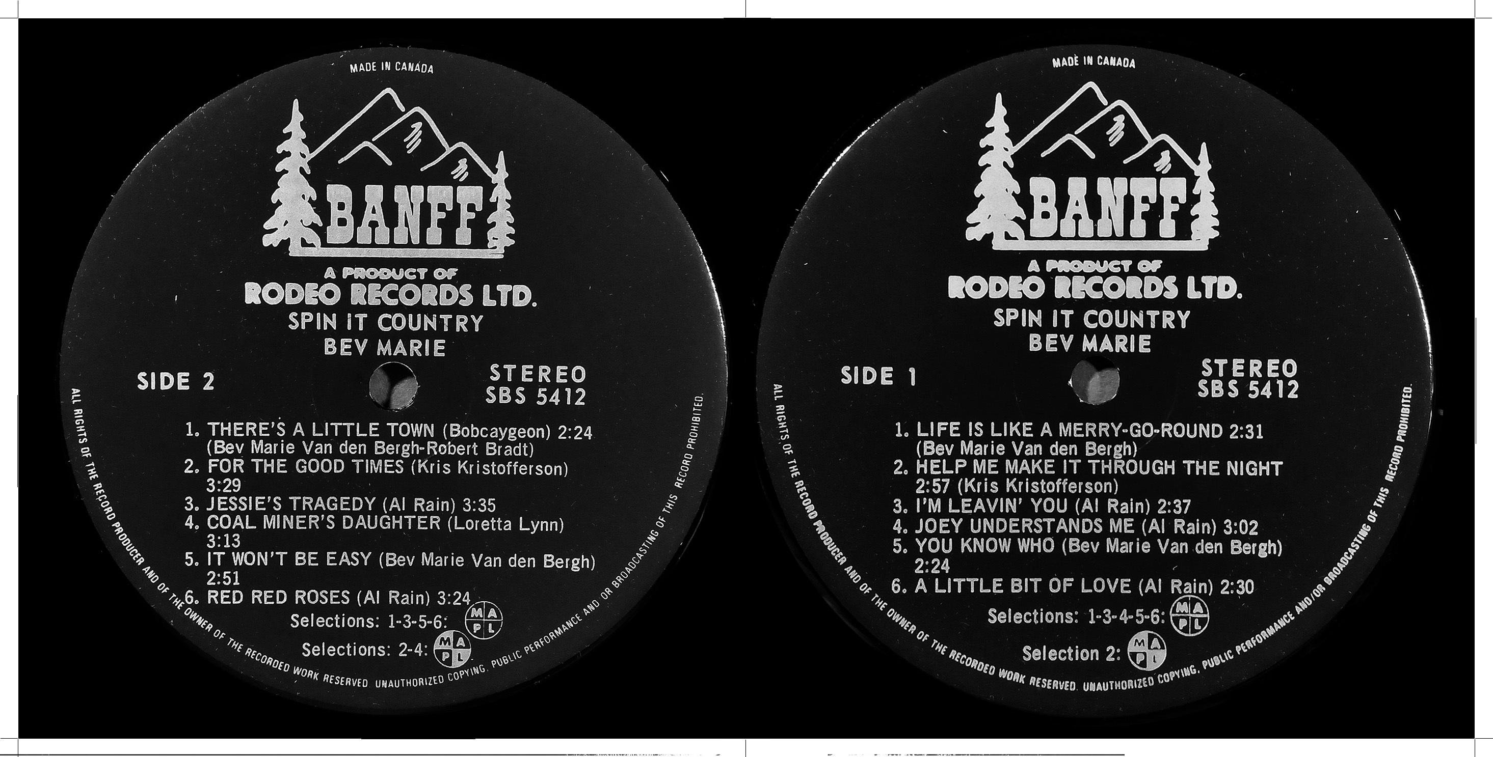 Bev Marie Van Den Berghe began her singing career at an early age in her hometown of Bobcaygeon, Ontario. Along with her father, Robert Bradt, and brother Malcolm, Bev won many an award at various country fairs for her vocal efforts. T.V. and radio appearances followed, and accompanied by her brother, Bev staged a number of shows. For eight months, Bev Marie acquired much experience both as featured singer and as bass player for Bud Roberts and the Bordermen as she traveled the night club circuit about Ontario and Québec. Besides being a fine vocalist and bass guitar player, Bev is also experienced in piano, accordion and drums.
