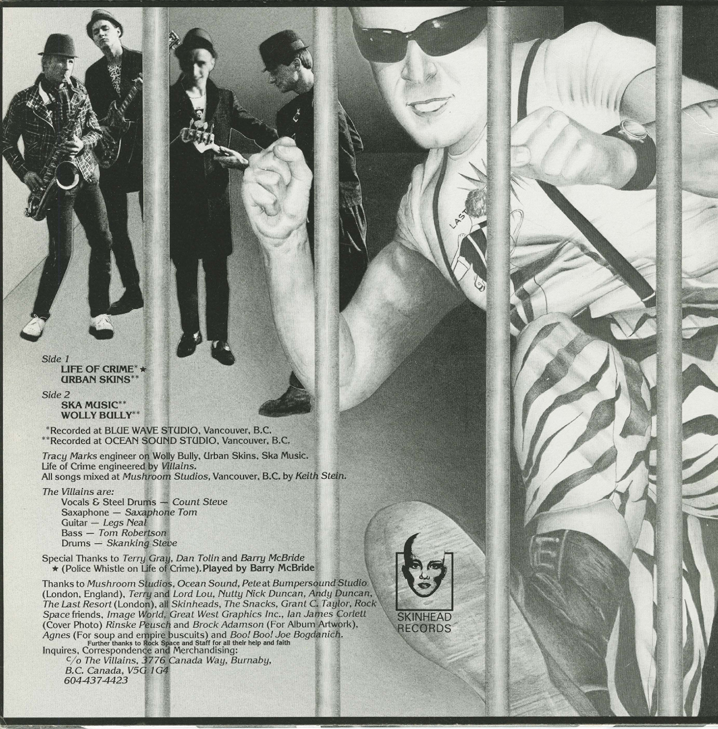 The Villains - a true story! Very few bands in the history of popular music have experienced exploding on to the national music scene like Canada’s VILLAINS. Shortly after arriving in Vancouver, the band found itself in the middle of an event that made front page headlines and received hourly updates on local and national radio and television. Performing in front of a packed club in downtown Vancouver, the VILLAINS were arrested on stage in the middle of a set by Canadian Immigration Officers. Picture the band stepping into a paddy-wagon, dressed in full ska / punk gear, tipping their pork pie hats to the photographers. Oh, did I forget to mention that that band were all skinheads? Remember, this was 1980 and a full band of skins was shocking enough and the fact that most of the media was not familiar with the term “Ska” and they weren’t sure how to describe the Villains music added to the buzz. When the VILLAINS legally returned to Canada they went on a ska crusade across Canada leaving a wave / ripple effect of ska music and non stop dancing fun times. Setting attendance records and breaking bar sales records at colleges and dance clubs everywhere they played. The Villains approached everything with their particular wacky sense of humor. The Villains live shows are legendary because of the unpredictable stage antics which have included gaffer taping the sax player to a high chair and shaving his head for an encore, or when they put the 6 ft 6 in. guitarist on stilts making him tall enough for the lead singer to run between his legs. So, the Villains haven’t played live since 1986 and leave a legacy of headlining the Commodore Ballroom 11 times, selling out the Opera House in Toronto, headlining the #1 dance venue in the world at the time, the Famous Ritz Ballroom in NYC and legions of crazed dancing Ska fans from coast to coast.