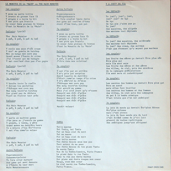 Beneath the scandal lay an ambitious, well-crafted work that fused heavy organ-driven rock, melodic ballads, and slyly humorous lyrics. Perron’s keyboards dominate, moving fluidly from Hammond swells to early synthesizer textures, while Ringuet’s precise drumming anchors the dynamic shifts. The album opens with the gritty “Voisins (Mon Chum)” and moves through cinematic pieces like “L’Instrumental” and “Tania,” before reaching its apex with “Le Monstre de la Main” (“The Main Monster”), a six-minute opus that earned modest radio airplay and later cult acclaim across Montréal’s FM scene. Balancing biting satire with moments of lyrical introspection, the album juxtaposed absurdist humour (Le Monstre de la Main, La Machine à danser) with reflective ballads like Les Saisons and Sais-tu que je t’aime (the latter penned by Claude Lafrance). The combination of strong songwriting, theatrical flair, and exploratory musicianship places the album among the earliest francophone expressions of progressive rock in Canada.