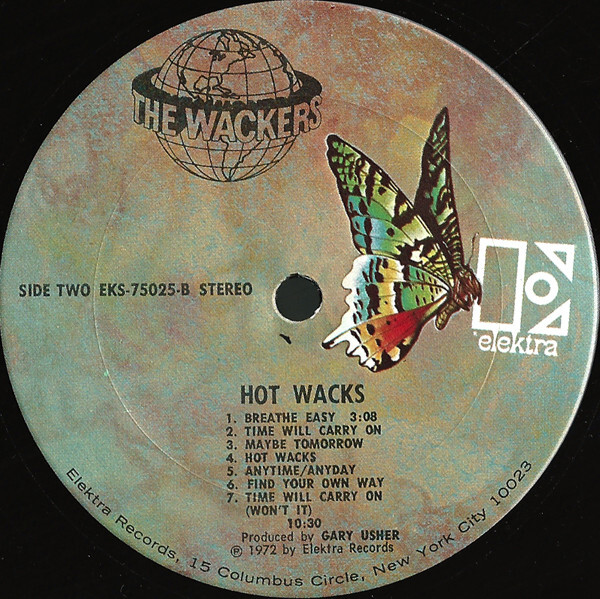The Wackers and Usher did not see eye-to-eye on the mix of the LP, however. According to Bob, "We had a big falling out with Gary Usher, doing the final mix of the Hot Wacks album. In fact, he walked out on a mix, and got on a plane, went back to California. I never saw him again. We had to finish the mix of 'Time Will Carry On' on our own. Which we did. I mean, you couldn't have stopped the Wackers with a sledgehammer. We knew we were good, and we knew what we were doing. 'Where's the gig, where's the stage, where's the recording studio' -- that was the attitude. So -- 'Oh, Usher left? Are we gonna fall apart?' 'Nah, I got a train to catch this afternoon, let's finish this.'"