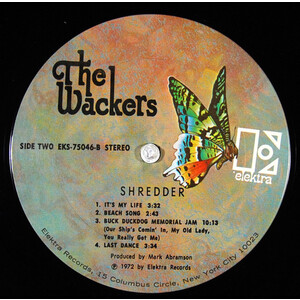 Although the Wackers had formed in Northern California, they moved to Montreal after recording most of their second album, 1972's Hot Wacks, in the city, returning to play an enthusiastically received two-month residency at the Mustache club. Shredder started out not as a Wackers album, but as a side project for Bob Segarini and Randy Bishop, who had done much of the writing and singing on the first two Wackers LPs. Calling themselves the Incredible Duck Brothers, they were joined in the recording by Wackers bassist-guitarist Bill "Kootch" Trochim. Segarini had studio time at Wally Heider's Studio in San Francisco, he explains, "and we went in and did some little acoustic things. There were three or four songs we did, sort of mellow stuff. Everybody was enjoying this." After getting a go-ahead from Elektra president and founder Jac Holzman to do a full album, he continues, "I said, 'I want to go back to Montreal and finish this.' At the end, Elektra was so knocked out by the songs they flew [Wackers drummer] Ernie [Earnshaw] up, and we finished the album as the Wackers. So, so much for the Duck Brothers. But that's why it really leans back to the acoustic days, 'cause that's how it started out."