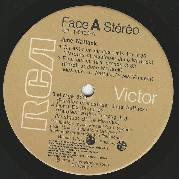 Recorded at RCA Victor Studios, Montreal, Quebec
