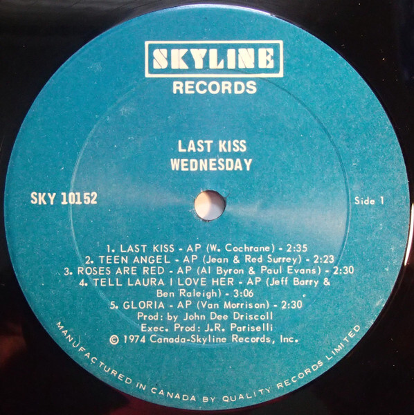 Wednesday was a pop vocal group from Oshawa, Ontario, Canada. They scored a hit single in the U.S. Billboard Hot 100 chart in 1974 with their cover of the song "Last Kiss", which peaked at #34. An album of the same name followed and that same year, they were nominated for the Canadian Juno Award for Most Promising Group. The single reached #2 in Canada and #1 on the Canadian Billboard 100.