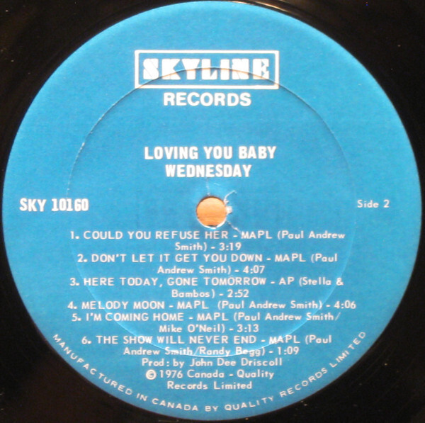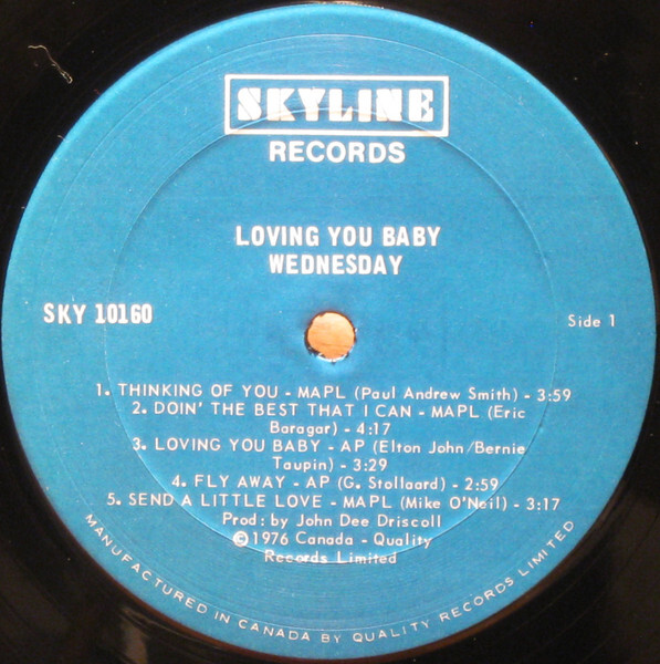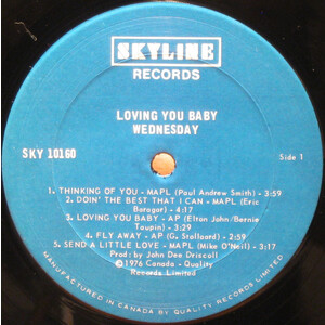 Wednesday scored their second biggest hit with an Elton John cover, "Loving You Baby". The single reached #6 in Canada and an album followed of the same name. This album features classic Pop vocals that were made popular in the early 1970s in the band's local scene.