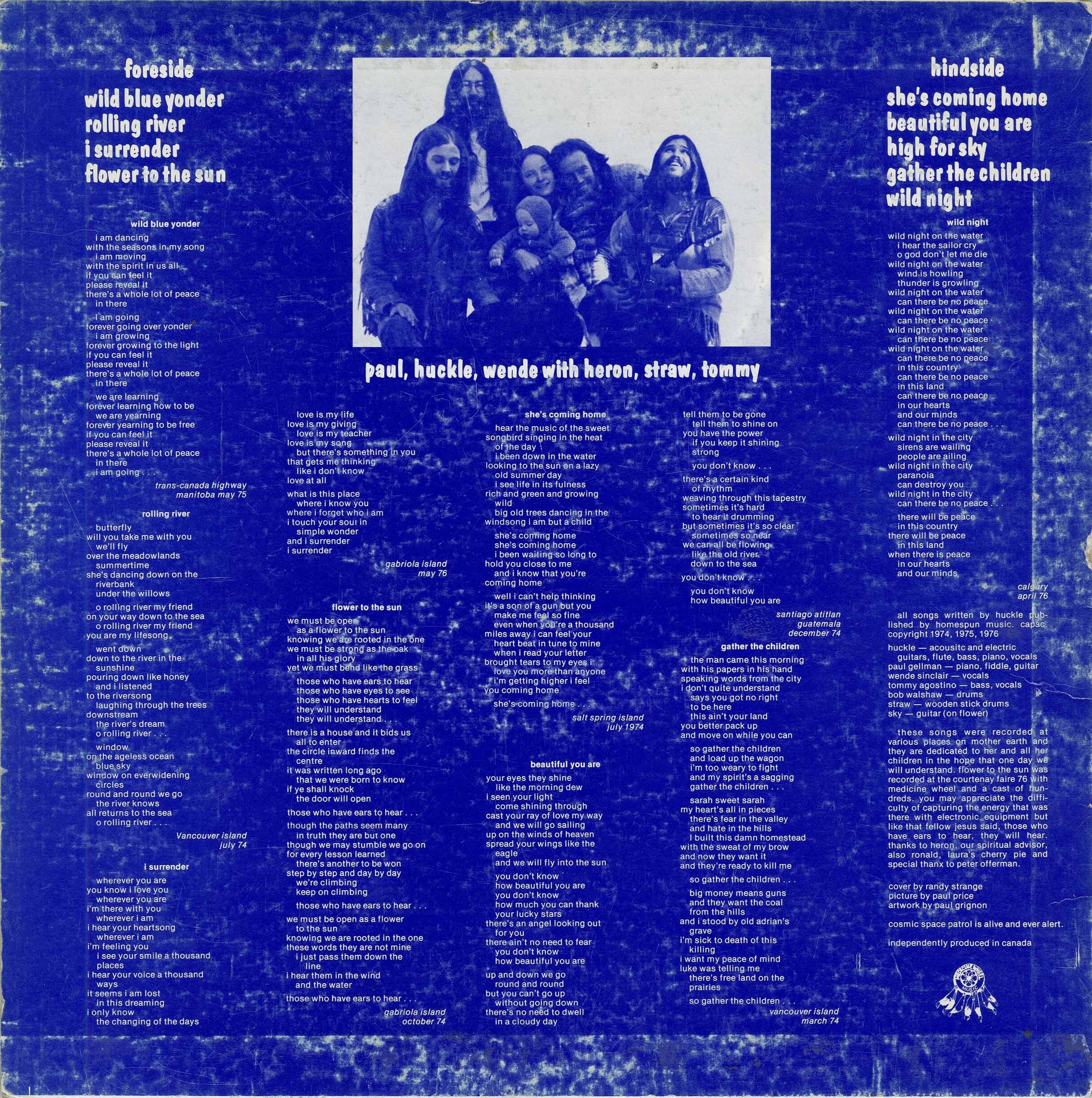 This is Huckle's second album, recorded live and in studio, and is the rarer of the two Huckle LP's with only 300 copies pressed. Released privately in 1976, this has been described as Cosmic Flowing Hippie Folk Psych with help from Sky Sylamuth on guitar. Excellent music for the road, this rare and hard to find album is a perfect example of folk and rock made by a bunch of hippies in the seventies. The words are of love and tolerance, and free life and travelling, while the music suits the words well and transcends all of their messages flawlessly. Acoustic guitar and haunting fiddle, tablas and vocal harmonies of great and natural honesty of happiness from both the male and the female parts. Ths is a must have classic!