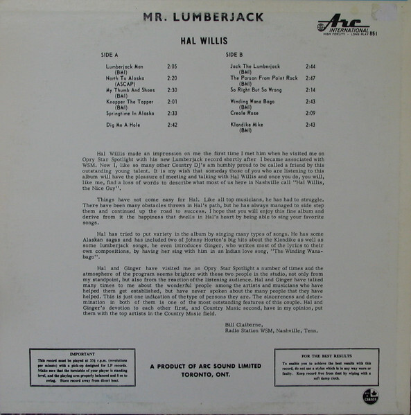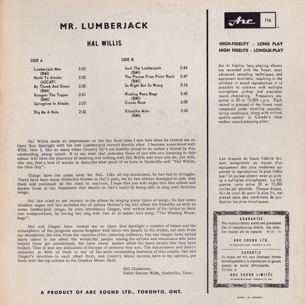 Willis, Hal (Leonald Francois Joseph Guy Gauthier) - Mr. Lumberjack