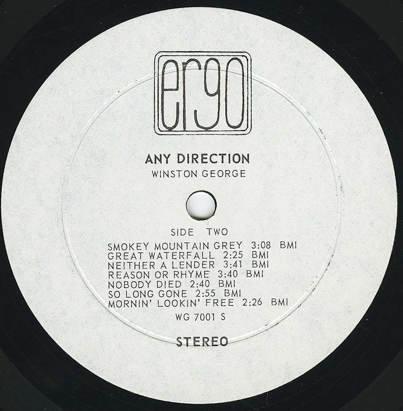 In the vein of introspective, political, moody, sparse folk psychedelia, and this is a true slow leak album, that will grow on you year after year. It was only released in the vicinity of London Ontario, and very few possible music stores in Canada outside Ontario or distributed by hand by Winston where he played. On the small indie label Ergo. Virtually unknown for this material in his own city of London Ontario, he played the coffee house circuit and bars in this time period, this is a stone classic, and very important document of Canadian music. Every song is good, all self penned on the LP and is timeless. On many collectors lists and featured in important documents on scarce psychedelia/folk. Fragile psychy folkrock with a dreamy garage feel, spacey organ, gentle vocals, and mostly acoustic guitar with occasional electric outbursts. Winston has passed away and this represents his first LP.