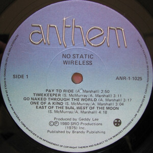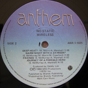 Anthem aimed to elevate Wireless to the next level and brought in Rush bassist Geddy Lee to produce the band’s third and final album, No Static (1980), recorded at Le Studio in Morin Heights, Quebec. Despite the pedigree and buzz surrounding the lead single “Pay to Ride,” commercial success remained elusive. The album would become a cult favorite, but without chart momentum, the group quietly disbanded shortly after Morin returned to a reformed Goddo.