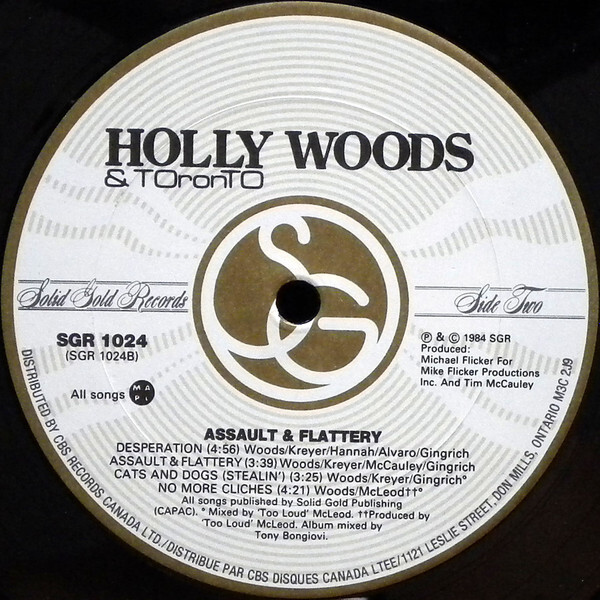 Assault and Flattery is Toronto's sixth and final album, released in 1985. The album features only two original band members, Annie "Holly" Woods and Scott Kreyer, perhaps explaining its release as "Holly Woods and Toronto". The CD release includes the bonus track "Where Are We Now?"
