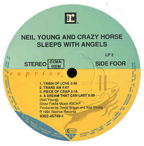 Though it once again reunites him with Crazy Horse and includes such typical rock workouts as the lengthy "Change Your Mind" and the raucous "Piece of Crap," Sleeps With Angels is more musically varied than most of Neil Young's albums with his erstwhile backup group, ranging from piano-based ballads like the album opener, "My Heart," and closer, "A Dream That Can Last," which might have fit on After the Gold Rush, to the country-folk "Train of Love," which sounds like a leftover from Harvest Moon, and the hard-edged grunge of the title track. The Crazy Horse influence comes in the songs' structural simplicity and the unpolished playing. Though musically diverse, Sleeps With Angels is a song cycle in which Young repeats the same themes and images. To put it simply, the album is about death, presumably primarily the suicide of Nirvana's Kurt Cobain, which occurred while it was being recorded. From "My Heart," which declares, "It's not too late" and "Somehow, someone has a dream come true," to "A Dream That Can Last," which declares, "There's a better life for me someday," Young begins and ends with a shaky, uncertain optimism, even though his language is riddled with references to violence, especially gunfire, and desperation. As in the album's title, even the references to sleep and dreams are about death. Young repeats some of the same lines from song to song and sometimes the same music ("Western Hero" and "Train of Love" have the same tune). The album thus has a tired, mournful feel that is both compelling and off-putting. Young had not investigated such forbidding territory since the days of Tonight's the Night and On the Beach, and Sleeps With Angels is on a par with those often harrowing works.