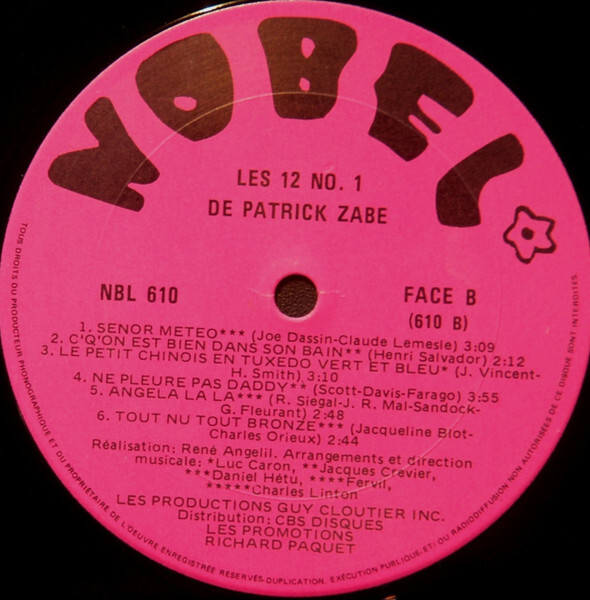 Les 12 No 1 De Patrick Zabé Face A