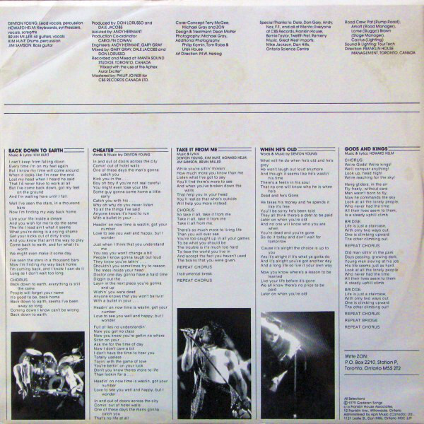 The follow-up, Back Down to Earth (1979), co-produced by Lorusso and Vancouver keyboardist Dale Jacobs, saw Zon expand their sound with a stronger melodic rock edge. They headlined a triumphant show at Maple Leaf Gardens before a crowd of nearly 18,000, but their momentum faltered after a Globe & Mail critic—who mistakenly reviewed the opening act instead of Zon—published a scathing national review. Despite CBS demanding compensation, the damage to the band’s reputation was lasting.