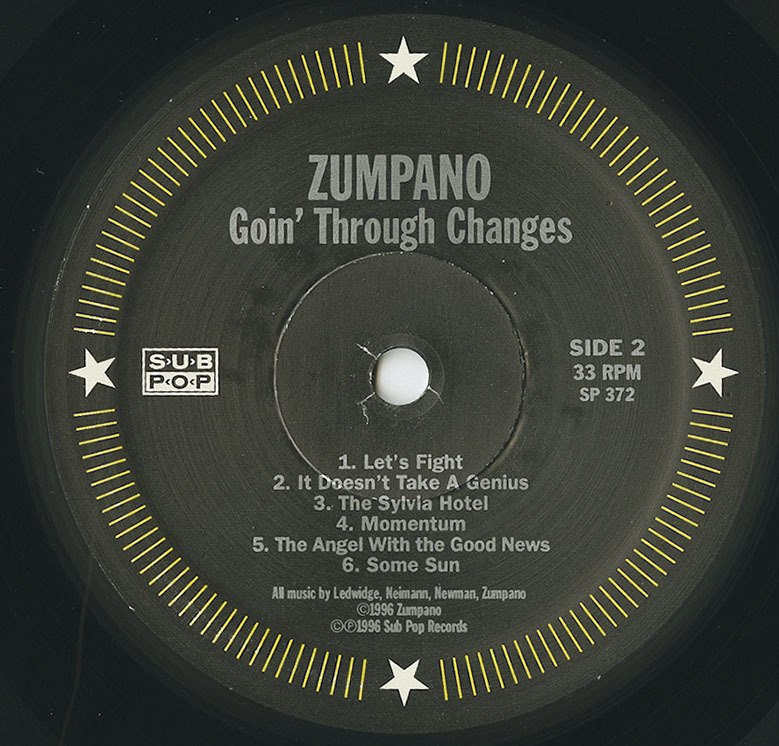 Vancouver-based quartet Zumpano had hinted at their soft pop roots on their 1995 debut, Look What the Rookie Did, covering Jimmy Webb’s “Rosecrans Boulevard” and investing originals like “Oh That Atkinson Girl” with a definite Brian Wilson influence, but the overall sound of the disc was crunchy pop along the lines of late-period Redd Kross. The follow-up, Goin’ Through Changes, largely dispenses with the power chords in favor of a sweet-natured, flowery strain of sunny pop tunes that un-self-consciously betray a deep fascination with the more ornate side of ’60s songsmithery without sounding the least bit retro. Singer and primary songwriter Carl Newman is clearly a fan not only of Wilson and Webb, but Randy Newman, Harry Nilsson, and Todd Rundgren, but unlike many of their contemporaries, Zumpano maintains a freshness and enthusiasm that keeps even the more tributary tracks (like “Broca’s Way,” which sounds like it could have come off of Love‘s Forever Changes) from sounding like stiff, careful homages to past idols. Other tunes, like “Let’s Fight” and the spirited opener “Behind the Beehive,” recall the lighter side of Sloan, or even (dare one say it) the better moments of ’70s bubble-rockers like the Sweet or the Bay City Rollers. Goin’ Through Changes is a terrific album, which makes Zumpano‘s extended layoff following it that much more frustrating.