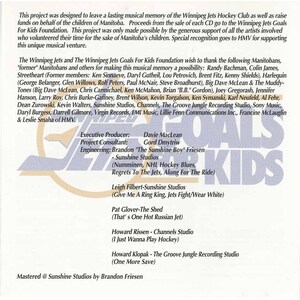 Randy Bachman's spirited tribute to Alexei Zhamnov, "That's One Hot Russian Jet," and Harlequin's energetic homage, "Numminen," stand out as musical highlights on this commemorative album. Joey Gregorash's reggae number was very popular on his show S'Kiddle Bits. Jennifer Hanson, Big Dave McLean, and other renowned performers further enrich the record, reflecting the passion and pride that the Winnipeg Jets inspired in their fans.