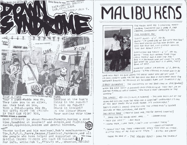 A really cool compilation of Edmonton Punk and New Wave bands circa 1983. Some interesting history here... early S.N.F.U. (back when they had the periods in their name) tracks as well as facecrime, Moe Berg's pre-Pursuit of Happiness bands as well as The Mailbu Kens, who were Mike McDonald's band before he formed Jr. Gone Wild.