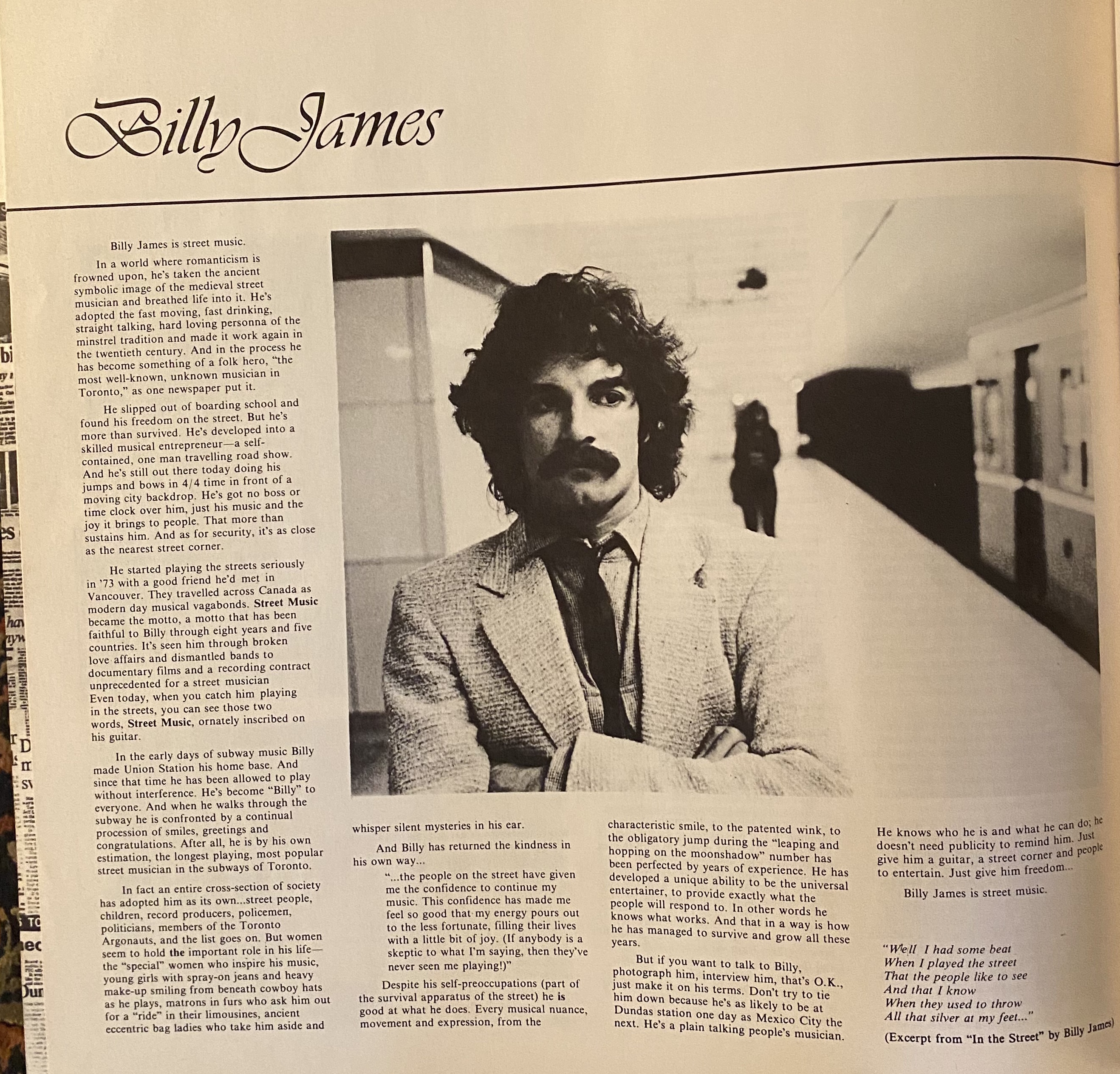 1979, the Toronto Transit Commission (TTC) decided to start enforcing a long-standing bylaw against soliciting in the subway system, and cracked down on buskers. The media picked up on the story of musicians being escorted out of the subway by the police, and petitions and public protests quickly followed. In the face of all this negative publicity, the TTC reconsidered their stance and began issuing licenses for street musicians. On Thursday, September 13th, 1979, the eight performers who had passed an audition paid their $50 fee, signed a licensing agreement and were issued photo I.D. cards to identify themselves. Voluntary donations were to be the property of the musicians, but no active solicitation was permitted, percussion instruments and amplifiers were not allowed, and no more than two musicians were to play in each station. The experiment was enough of a success that it was re-approved the following year and continues to this day.