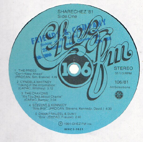 second LP released in the Share Chez series by CHEZ 106 FM. Locale talent from the community of greater Ottawa area appear on the record.