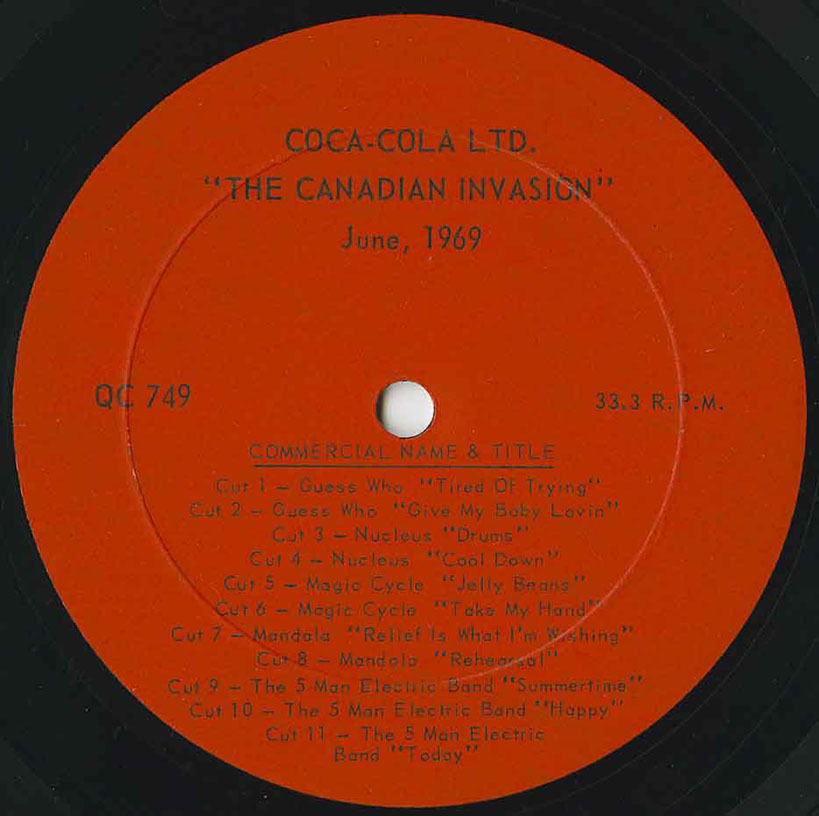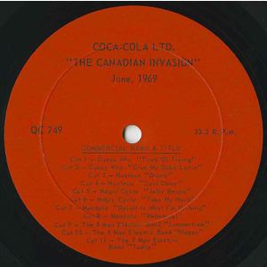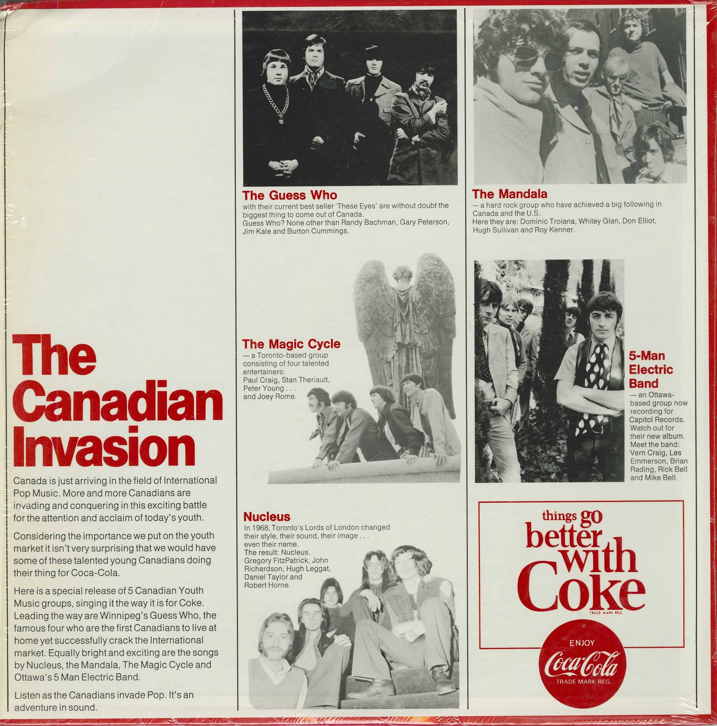 The Canadian Invasion was a rare promotional advertisement album that was recorded live in June, 1969 on Coca-Cola Ltd. QC 749 and featured Toronto's Nucleus (formerly Lords of London), Ottawa's 5-Man Electrical Band, Winnipeg's The Guess Who, Toronto's The Magic Cycle and The Mandala.