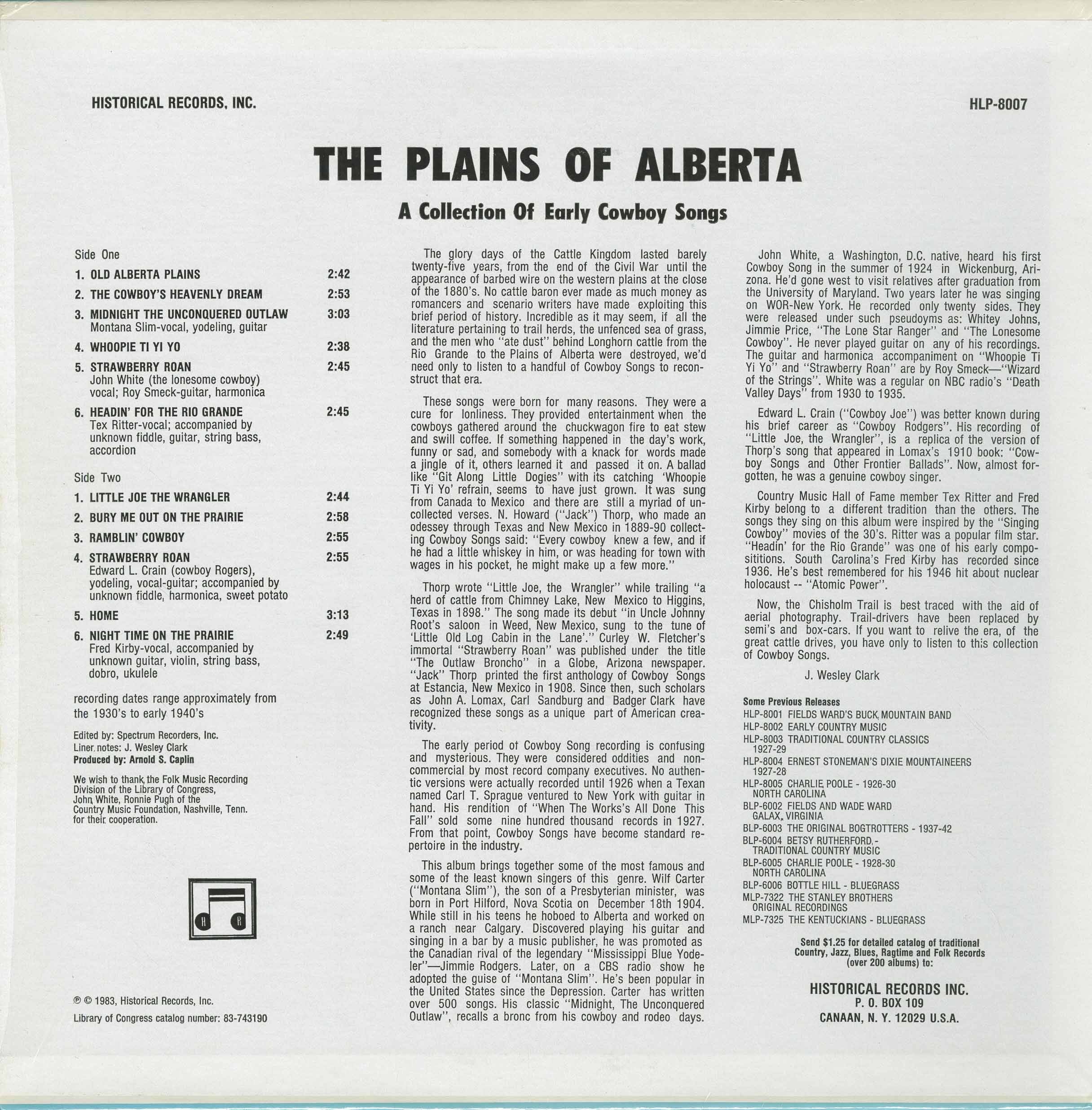 apparently it's a collection of early Alberta cowboy prairie music from the 1930's and 40's from the perspective of an American; featuring John White, Edward L. Crain, Tex Ritter and Fred Kirby (all Americans). and oh yeah, a little Wilf Carter sprinkled in to give it that Albertan flavour...albeit, early Albertan cowboy music is extremely sparse.