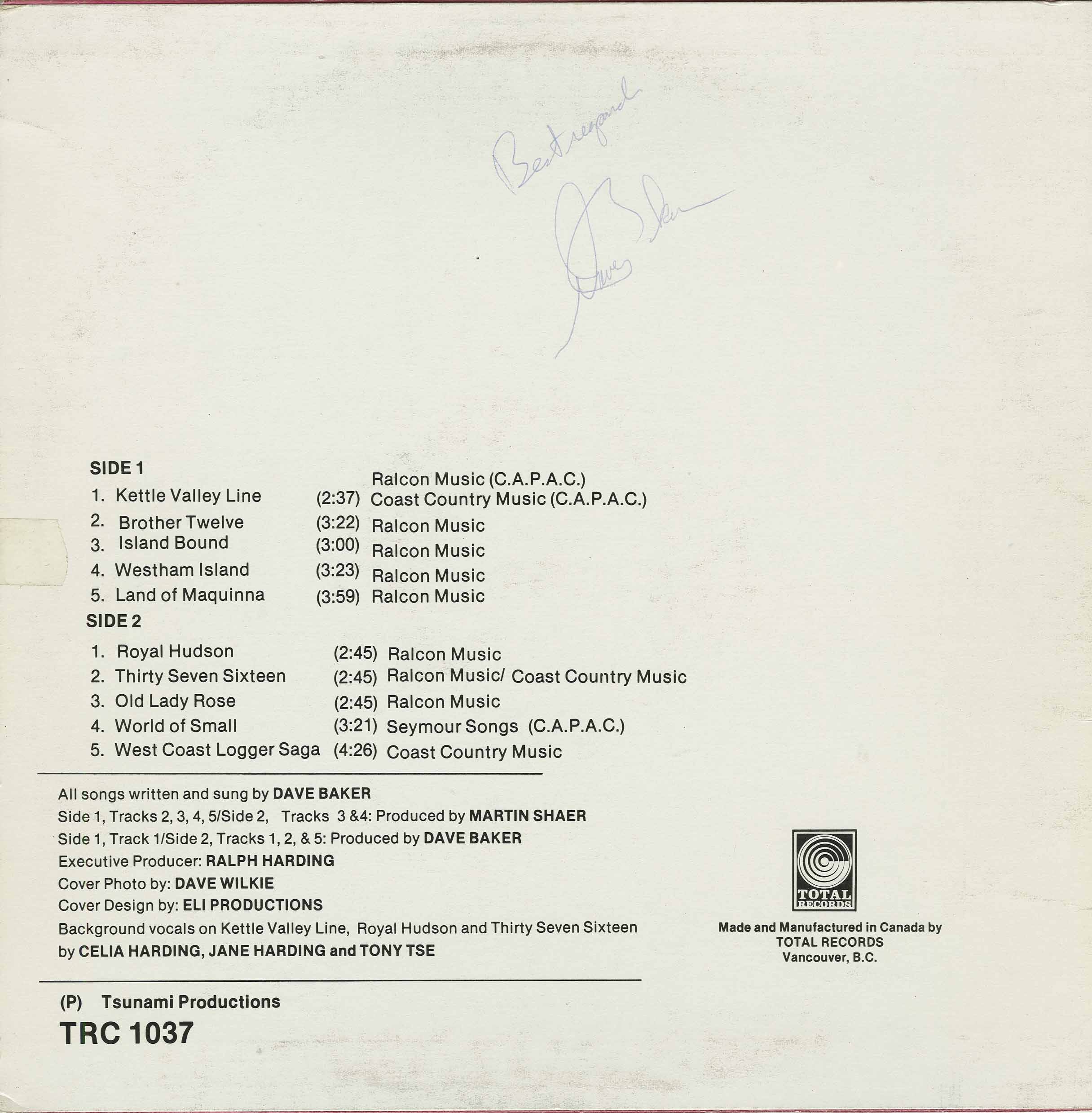In 1980, Dave became involved with the Kettle Valley Rail Heritage Society, an Okanagan group who were trying to preserve a section of the Kettle Valley Railway between Penticton and Kelowna in British Columbia, Canada. The group was to use Dave's Kettle Valley Line song as their marching hymn. Dave released his third album, Railway Memories to assist the cause. Though the rails were eventually lost, Dave's song has lived on and become synonymous with the railway. In 1984, Dave retired from the music business and turned his full attention to his engineering career and family.