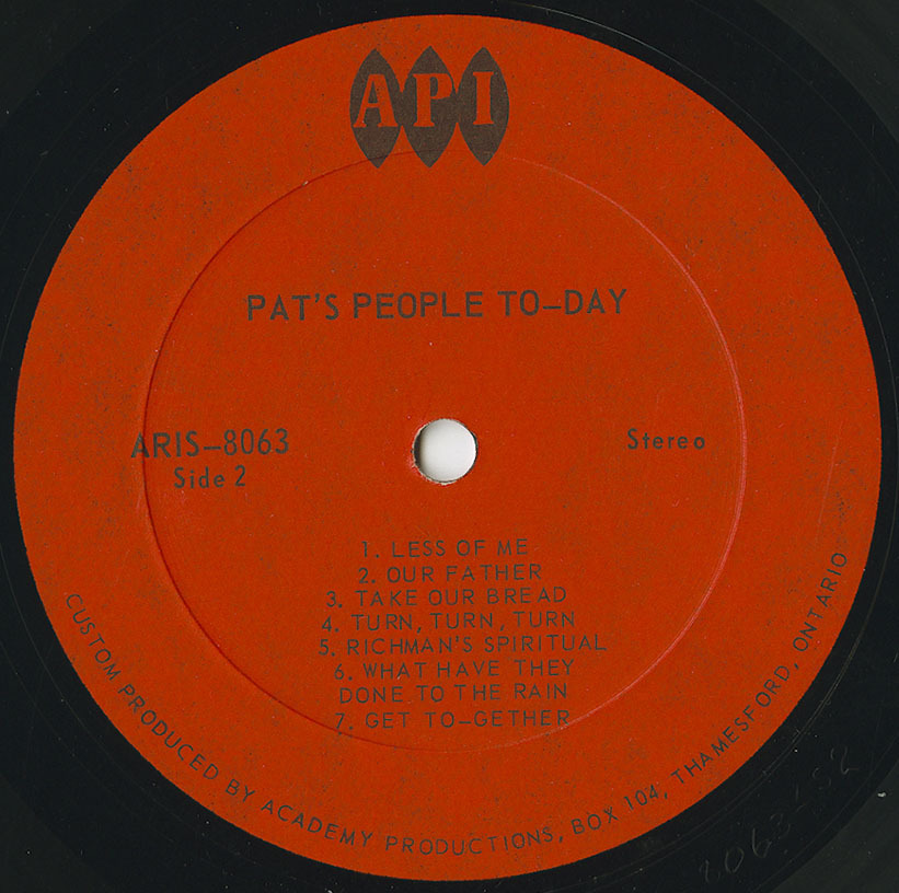 Formed in 1971 at St. Patrick’s Church in London, Ontario, Pat’s People was an all-girl vocal group whose private-press LP Today remains one of the rarest Canadian folk recordings of the 1970s. The group blended gentle folk-pop harmonies with a strong Christian message, offering a youthful, female-driven reflection of both the singer-songwriter movement and early Catholic liturgical folk traditions.
