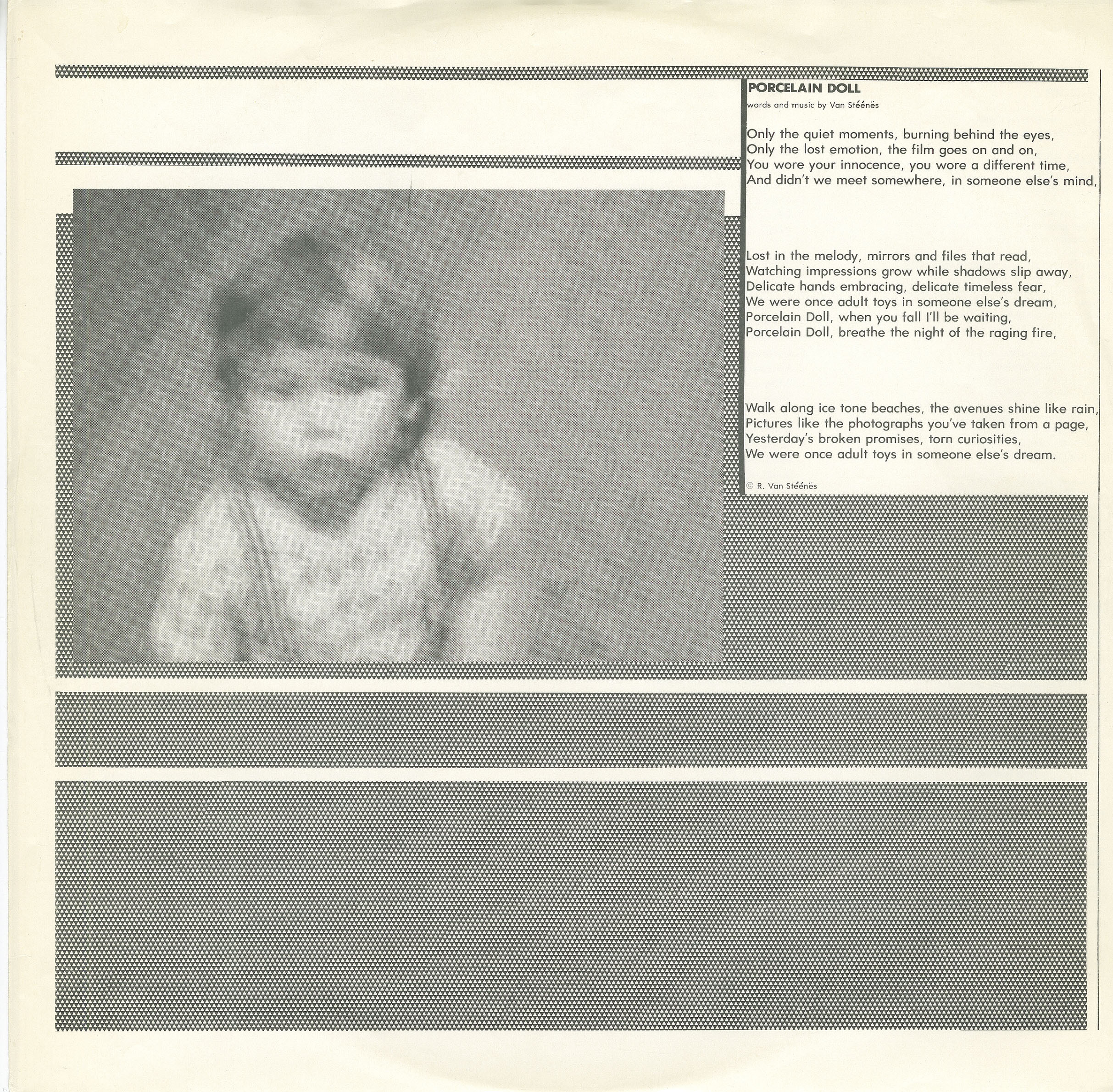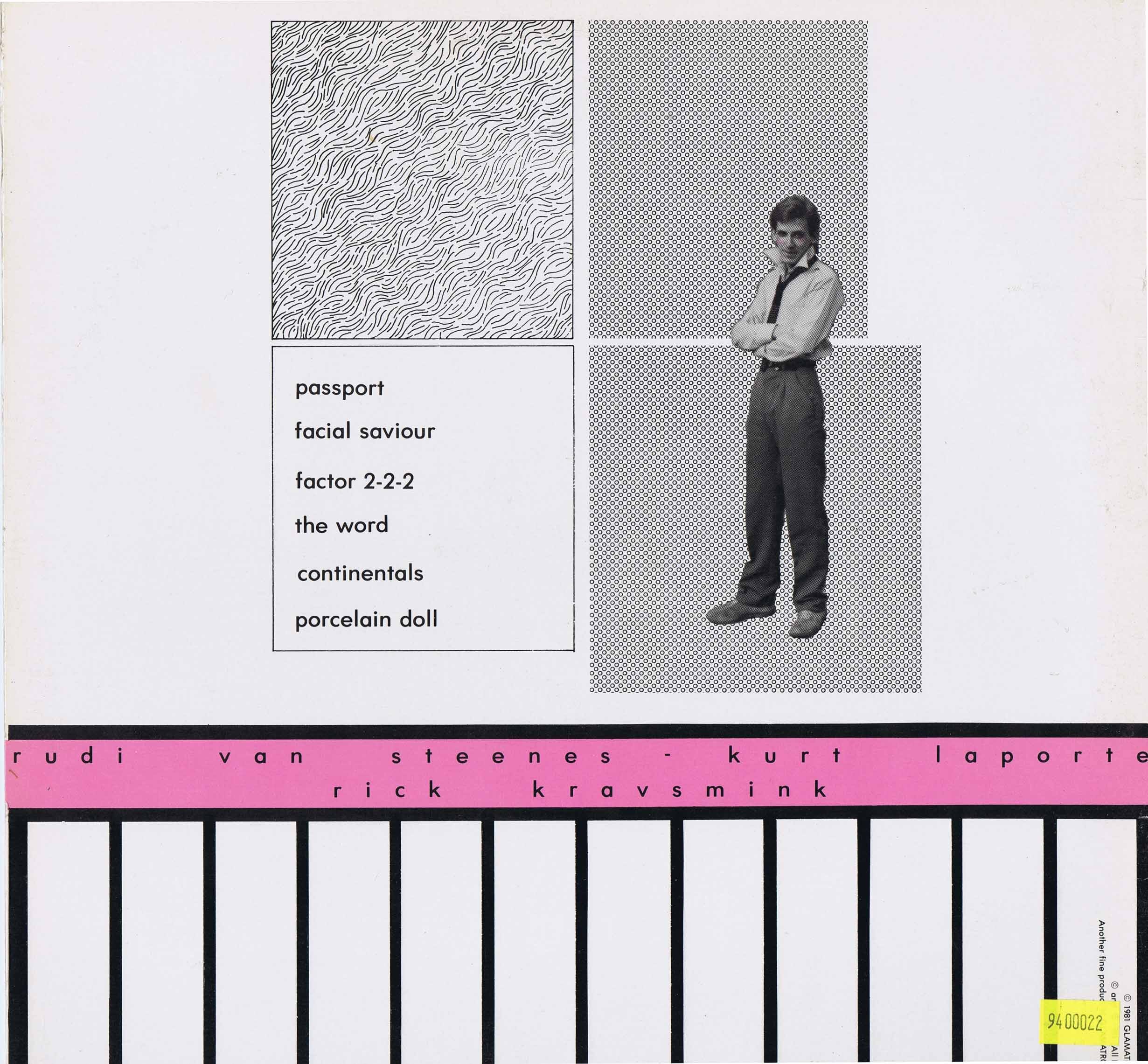 Some excellent minimal synth tracks combined with organic touches, sometimes reminiscent of John Foxx-era Ultravox. Either way, a true gem. Kurt Laporte, credited as a songwriter on this release, went on to form a group called Vis-A-Vis with Rude Van Steeners. He then dropped out of the music scene.