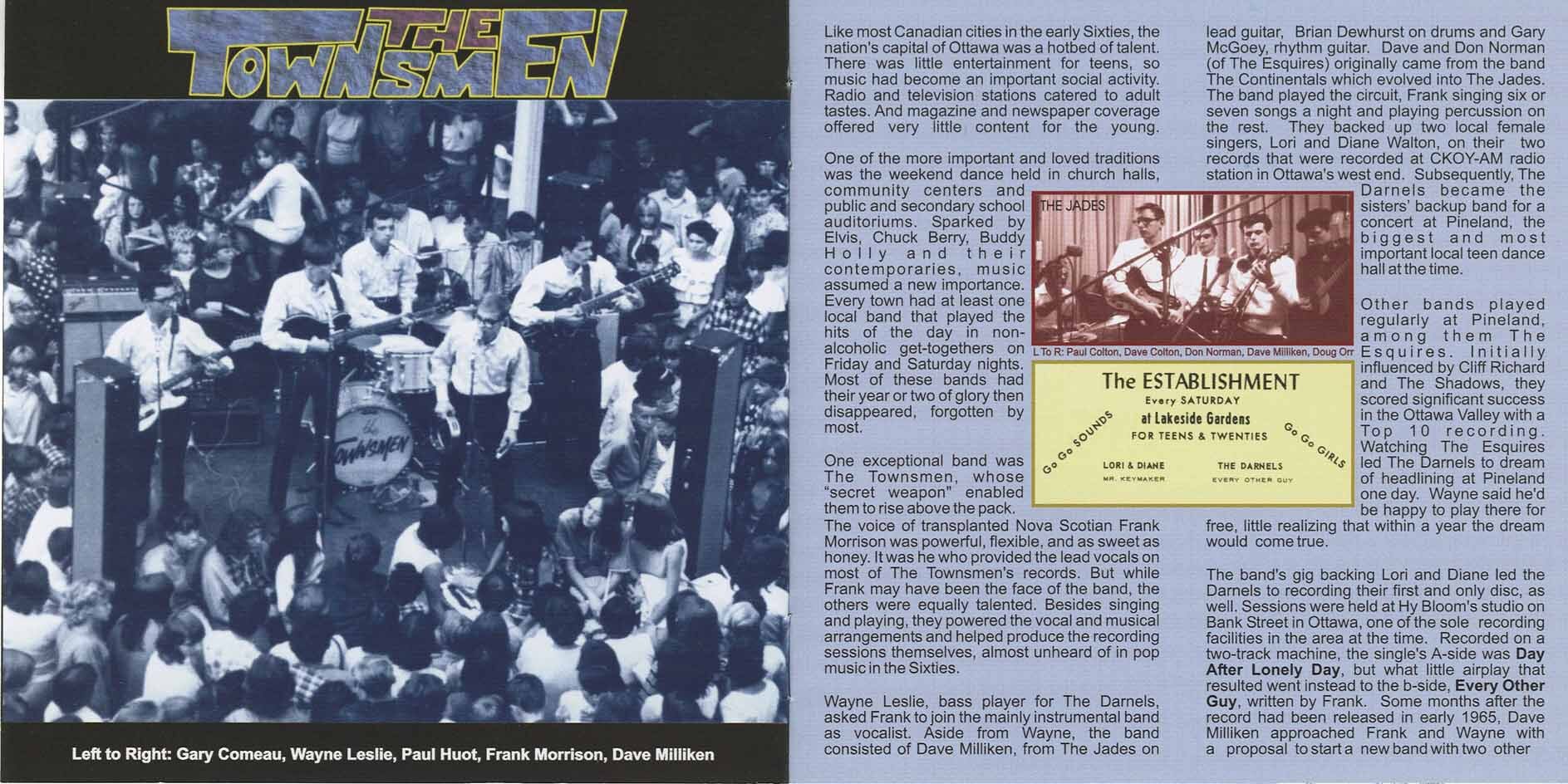 In retrospect, The Townsmen represent a peak moment in Ottawa’s 1960s pop scene: a band that combined professional ambition, strong songwriting support, and relentless live work to achieve genuine national impact. Their recordings, later collected on archival releases, document a group operating at the intersection of British-influenced pop, North American rock, and the uniquely Canadian conditions of the pre-CanCon era, securing their place in the country’s rock-and-roll history.