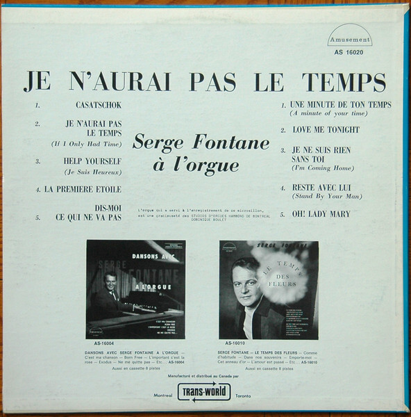 Je N'Aurai Pas Le Temps Back cover