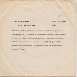 C'est Toi Que J'aime b/w Viens Danser (picture sleeve)