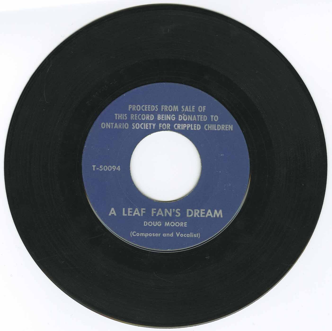 Doug Moore composed and recorded the one-sided single “A Leaf Fan's Dream” and donated the entire proceeds to the Ontario Society for Crippled Children.