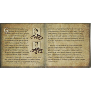 The CD liner notes explain the roots of Gypsy jazz. “Gypsy Jazz was shaped within the context of Paris in the 1930s’ by Django Reinhardt, Stephane Grappelli and the Quintette du Hot Club de France. Together these two masters popularized this style and made waves throughout the world. Gypsy Jazz is an utterly infectious genre of music that encompasses haunting airs, swinging melodies, driving rhythms and virtuosic improvisation. All of this is delivered with the Gypsy flair.”