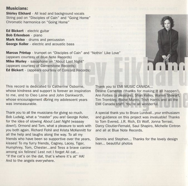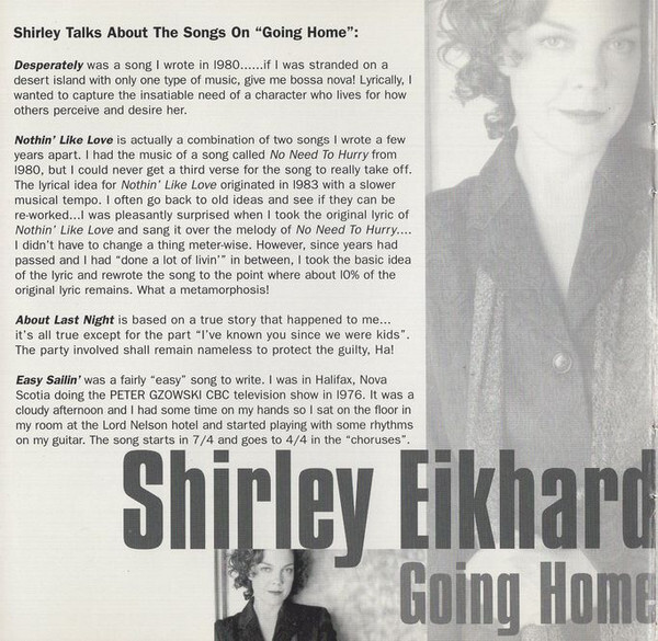 Beginning in the mid-1990s, Eikhard returned to recording with a renewed focus, increasingly exploring jazz as both a vocalist and composer. Albums such as If I Had My Way (1995), The Jazz Sessions (1996), and Going Home (1998) demonstrated her ability to write original material that functioned convincingly within the jazz tradition rather than relying on reinterpretations of standards. Going Home received the East Coast Music Award for Best Jazz Performance and led to national television appearances and collaborations with leading Canadian jazz musicians.