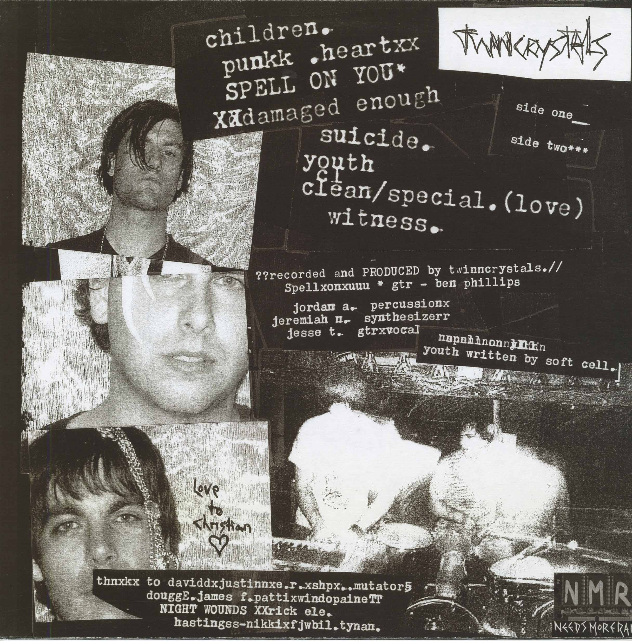 Written shortly before being put to tape, “Punk Heart” is the group’s punchiest number. Amidst a bone-cracking backbeat and vintage-synth squawks, Haywood’s gristly guitar tone assaults the ears with a gnarly surf-styled solo. The tune’s shaky, handheld-camera–shot video suits Twin Crystals’ current off-the-cuff attitude. In it, Taylor twirls around his living room, batting at balloons with his guitar and tearing down streamers as he lip-synchs the occasional lyric, only to collapse in a giggle fit.