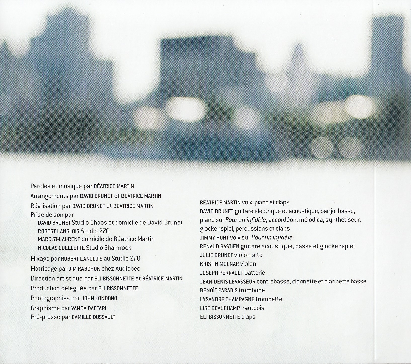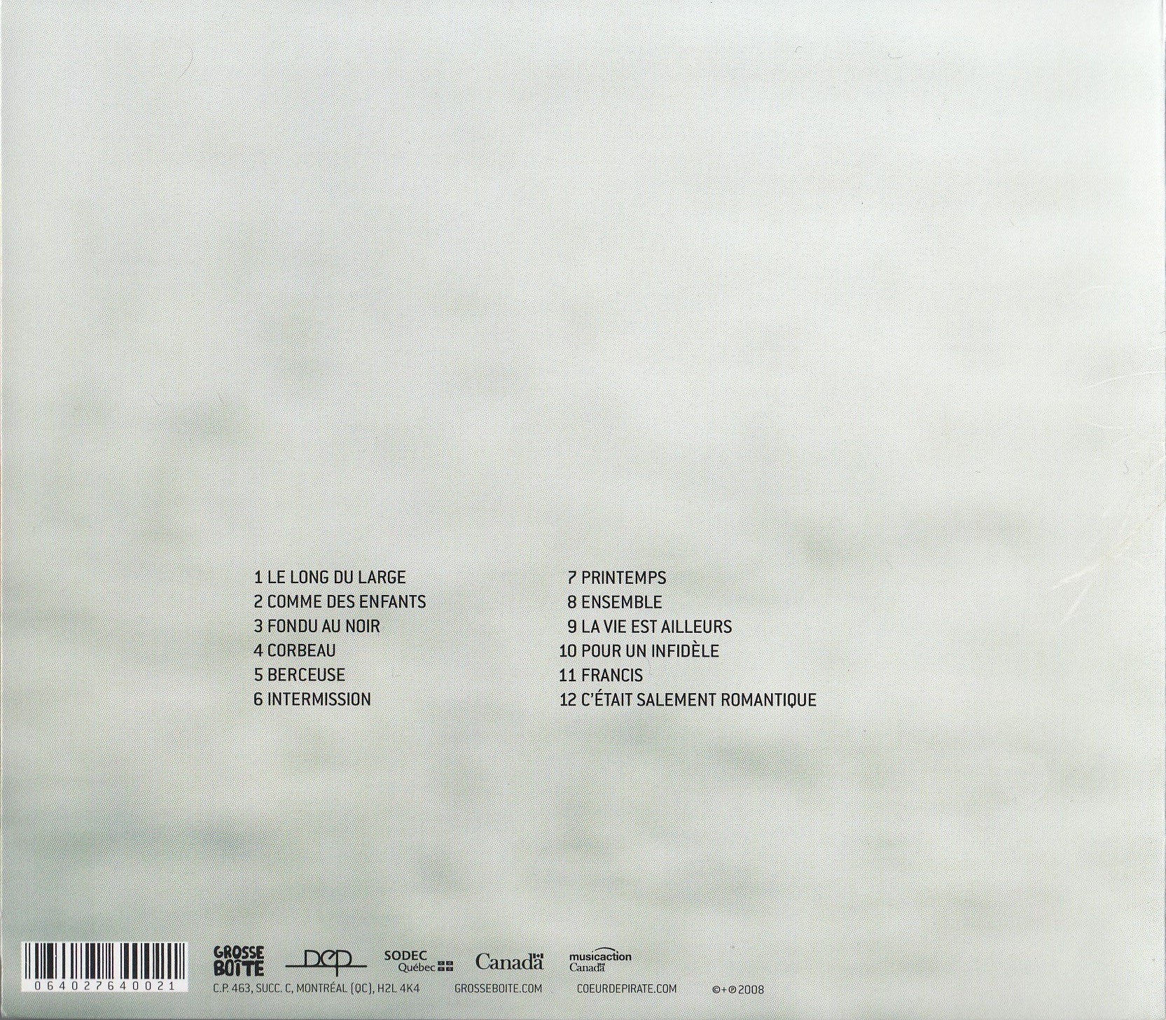 Cœur De Pirate - ST Inner sleeve (back)