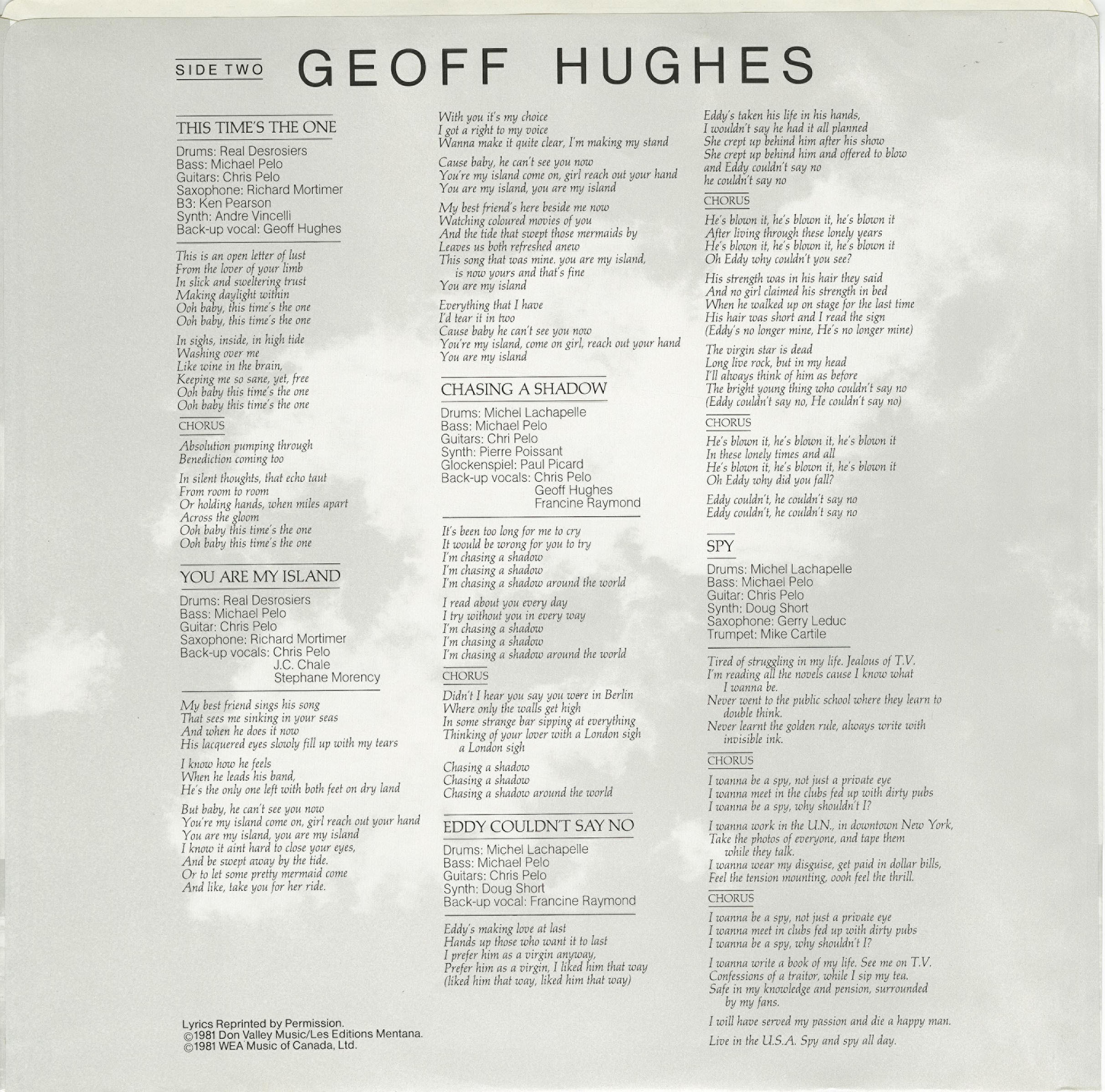 Hughes marvels for a moment that 2021 marks the 40th anniversary of his debut. He's still not eager to be in the public eye, and he's reluctant to afford the record, or himself, too much credit, but he does think Geoff Hughes was probably the first new wave album in Canada. And maybe Canada really wasn't quite ready for him yet.