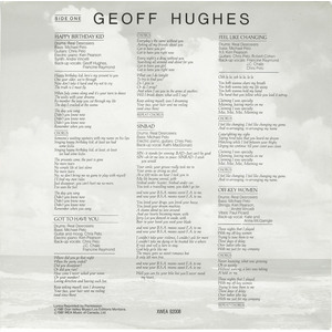 "There was a big recession and Warner got rid of all their artists except Daniel Lanois, they kept him," Hughes recalls. "He was a big star in Quebec, they had to keep him and everybody else including Geoff Hughes was let go ... I've still got the masters of the demos. There's some good stuff there. Unfortunately, there was nothing that stuck out, nothing as good as 'Happy Birthday Kid.'"