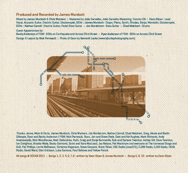 The new album, Turning to Wave, was recorded in Edmonton, Alberta once again and features some of the city’s best musicians: James Murdoch adds the ear candy; Nathan Carroll strums and plucks the catchiest of guitar hooks; and F&M lends some golden background vocals. Alberta native turned Nashville resident Chad Melchert plays solid yet emotive drums, and from Deon’s current home (Calgary), Jon Nordstrom adds his soft touch on bass.