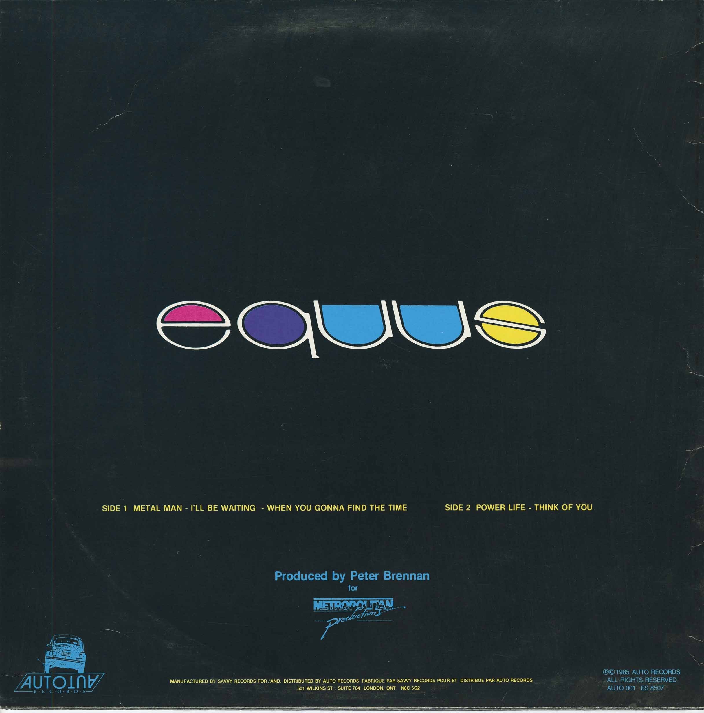 The following year, Equus issued the 7-inch single ‘You Decide’ b/w ‘She’s Gone’ (Auto 002). Again produced by Peter Brennan — this time for Jim Dunlop Productions with Metropolitan Productions — the single was recorded at EMAC Studios in London, Ontario, engineered by Joe Vaughan with assistance from Pauline VanderWerf, and mastered at Laquer Channel in Toronto. The release expanded the group’s sonic palette, incorporating guitar synthesizer textures and more polished studio layering while retaining the band’s vocal-forward identity.