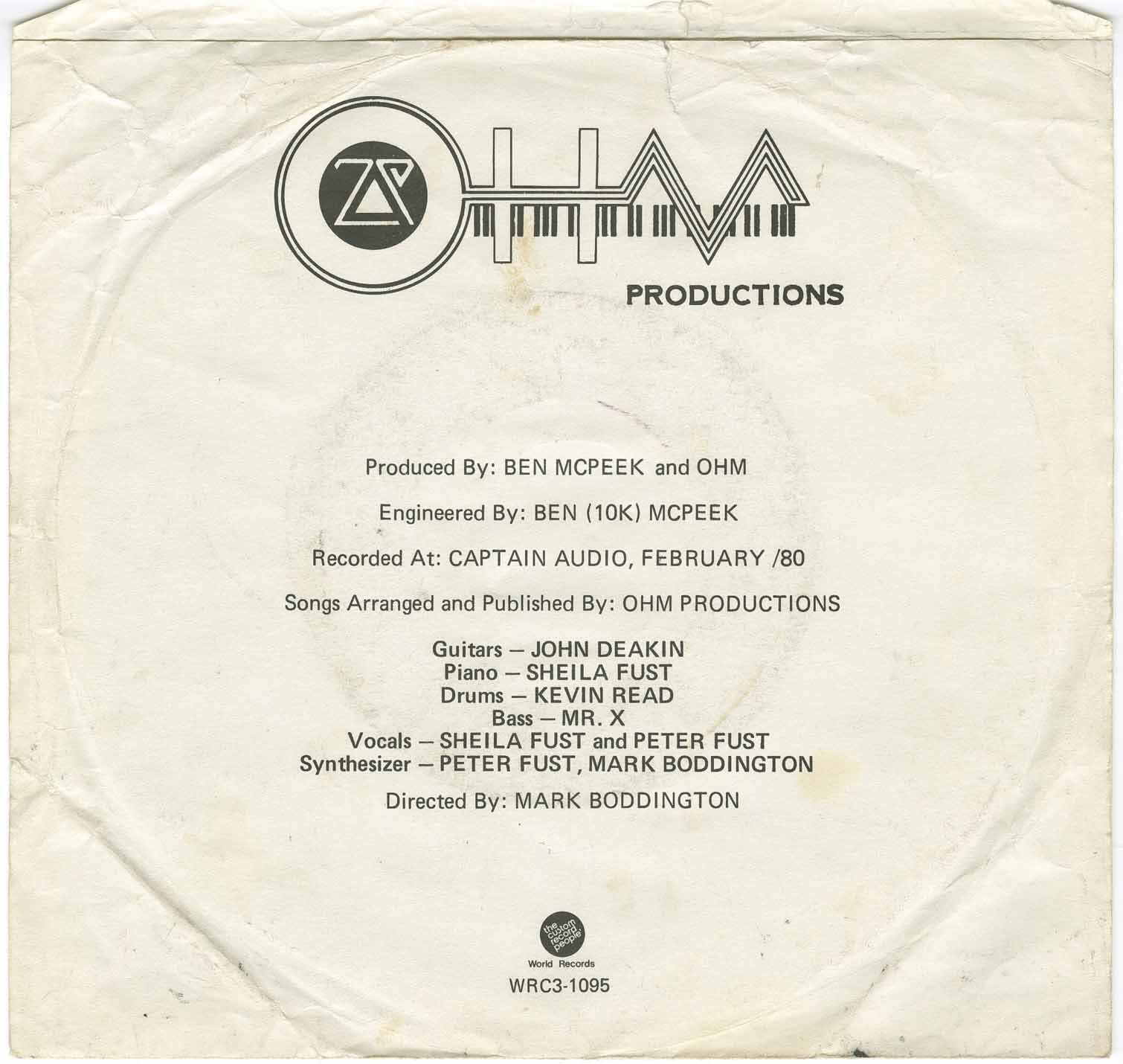 First single cut by Peter Morrison and Sheila Fust as Ohm & the Secret Sources. Peter Morrison "OhmAngel", was born in Budapest, moved to New York then to Toronto with his family, where he started composing original music on the guitar at the age of 13. He had a Near Death experience at the age of 21 due to his Rock N’ Roll lifestyle and after his brush with death and a resurrection onto the light, an angel guided him to a GrandPiano, where he played his own spiritual self-styled classical rock n roll music. 4-GodPeter wrote his first solo compositions for piano, in 1977 entitled “Vibrations From Heaven” & "OhmStation" which was aired by Dave Marsden on CFNY in Toronto 79', followed by this 45 rpm record, followed by an EP in 1984, which was Aired on Q107.