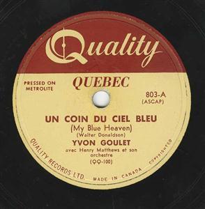 french version of Walter Donaldson's My Blue Heaven (1928); a fine latin version by Goulet with Henry Mathews et son Orchestra