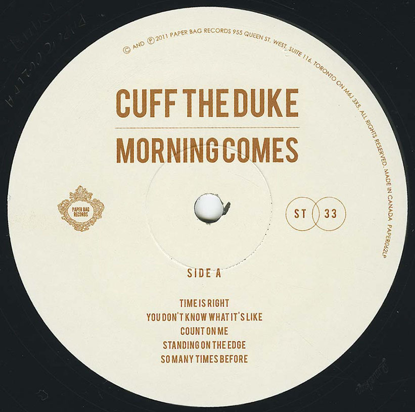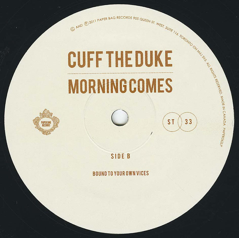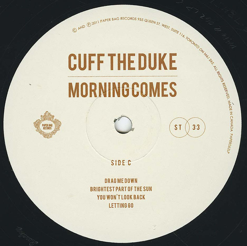 Morning Comes is the latest full-length release from Oshawa indie alt-country favourites Cuff the Duke—although perhaps it is misleading to classify the album as either indie, or alt-country. One expects obscurity and exclusivity with such terms, and Morning Comes is highly accessible. While the LP is technically “indie”—it’s being released through local indie label Paper Bag Records—there is something irrefutably mainstream about Morning Comes.